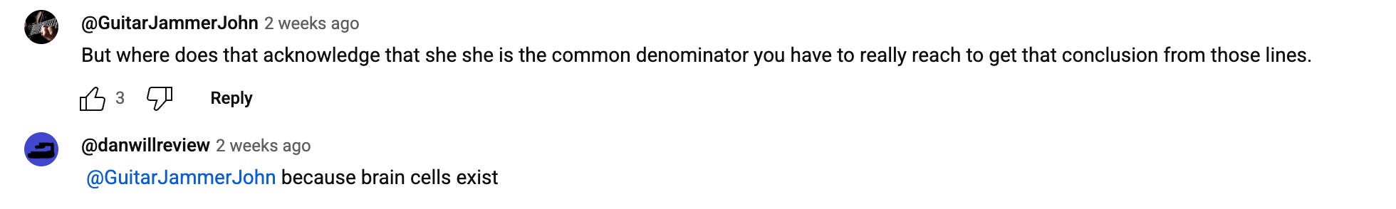“Sabrina writes in a bridge that basically absolves her of any responsability here”.